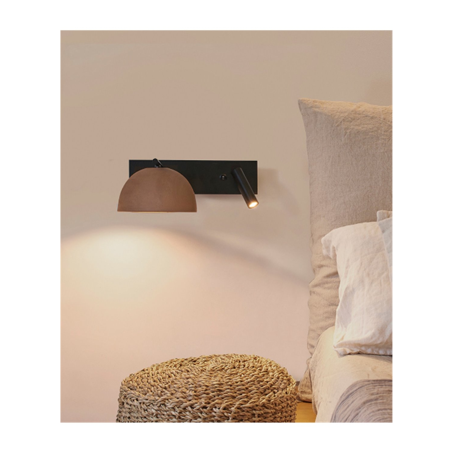Esta nueva versión con lector del aplique Absis se adapta perfectamente como lámpara de cabecera creando un ambiente relajado. La pantalla de cerámica hecha a mano, da un toque natural y de calidez al entorno.