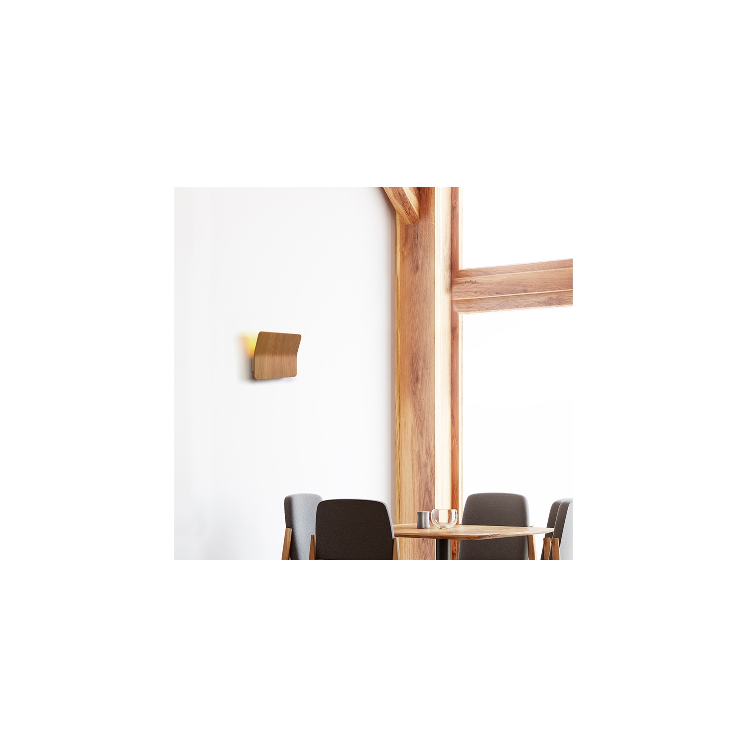 El contrachapado multicapa y la tecnología adecuada permiten curvar la madera con el mínimo espesor posible y gracias a la tecnología LED, se consigue que la fuente lumínica ocupe el mínimo espacio y grosor.