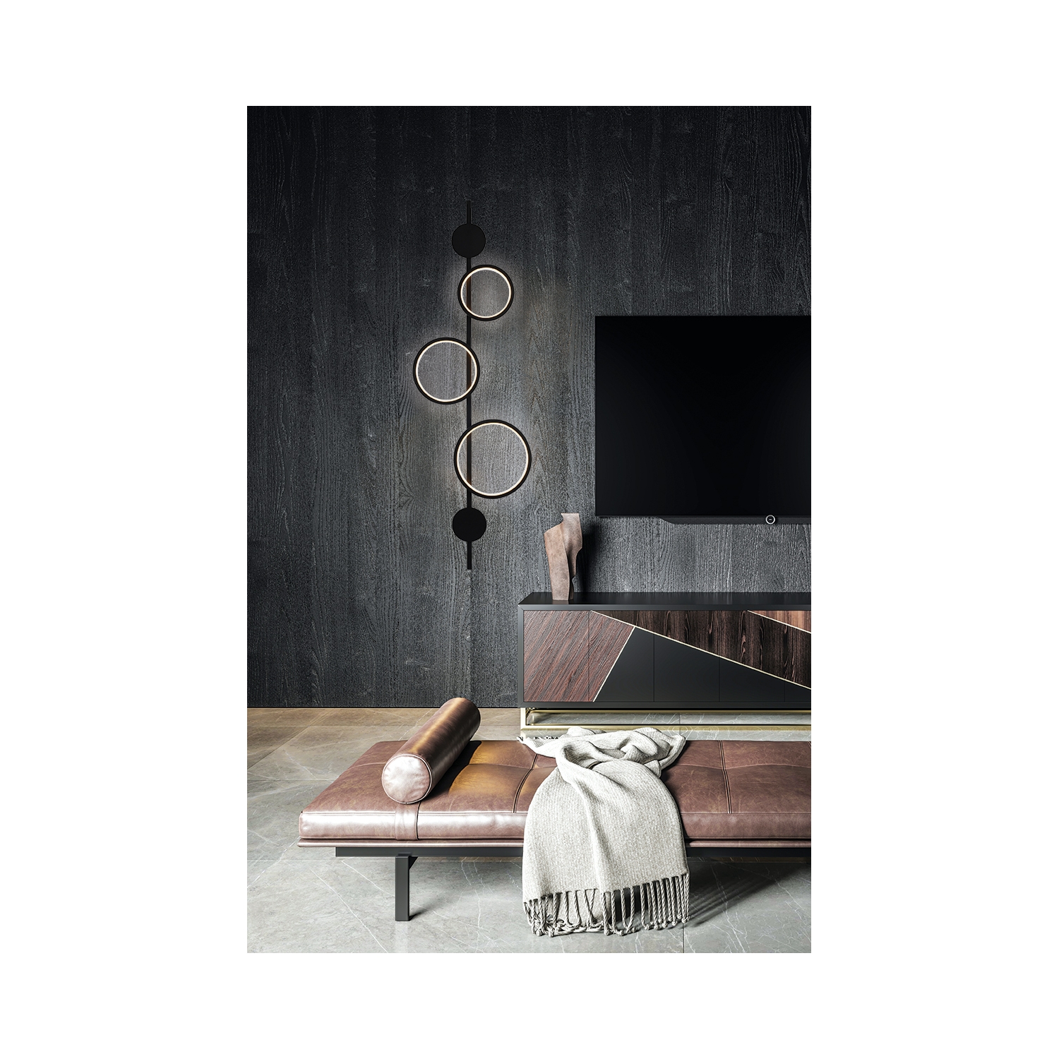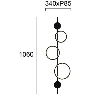 Un aplique que destaca por su forma geométrica y es adecuado para espacios con una estética moderna en la decoración. Con su diseño minimalista, su estructura de metal y su forma de "jugar" con el espacio vacío, esta composición destaca por su sencillez y parece una obra de arte.
