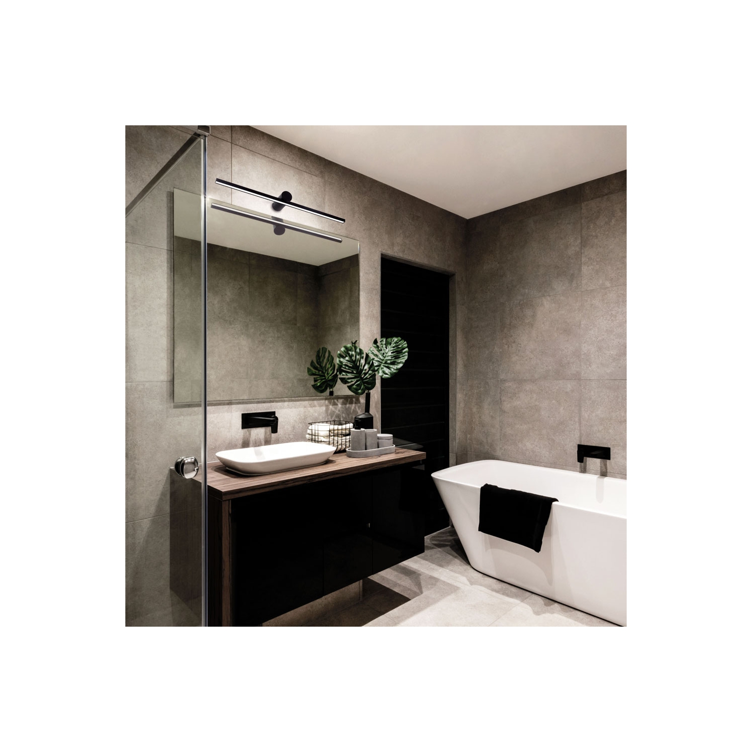 El aplique de baño negro Rocco promete aportar estilo y estilo extra, con su diseño elegante, minimalista y moderno.