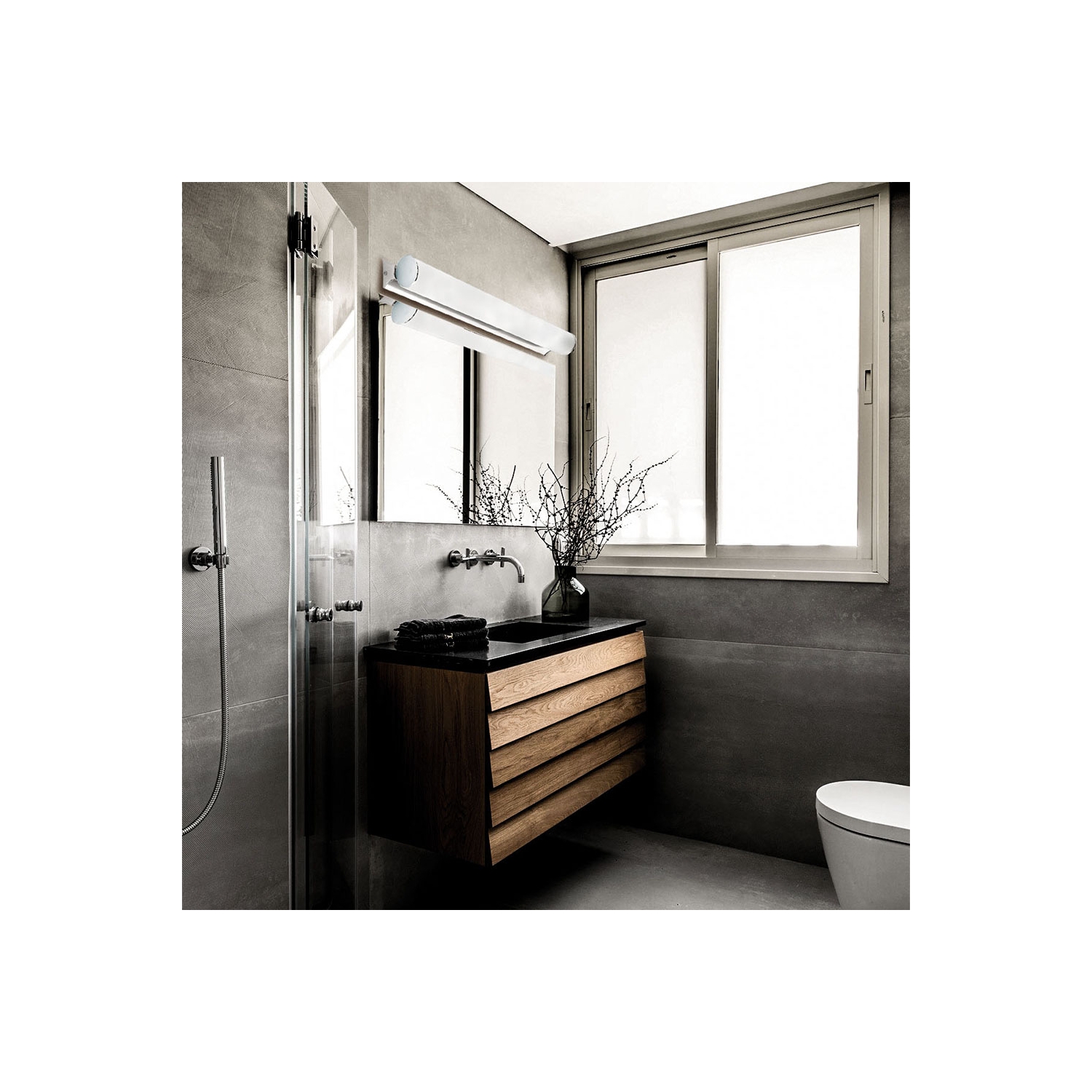 El aplique Fibi Led de diseño clásico, con base cromada y cristal blanco satinado, aporta un extra de estilo a tu baño.