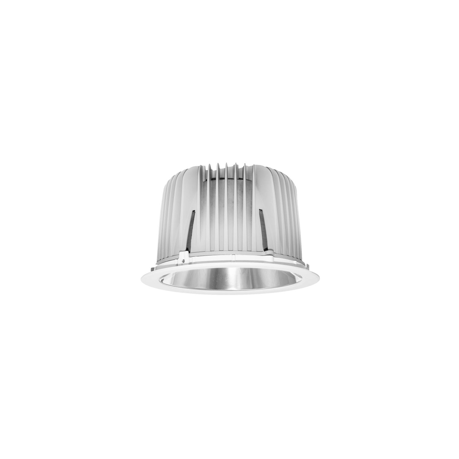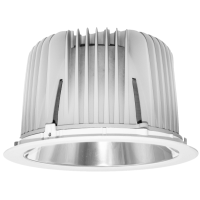 Downlight empotrado de alto confort visual en 50W de potencia lo que lo hace práctico y versátil para iluminar espacios de alturas importantes y exigentes.