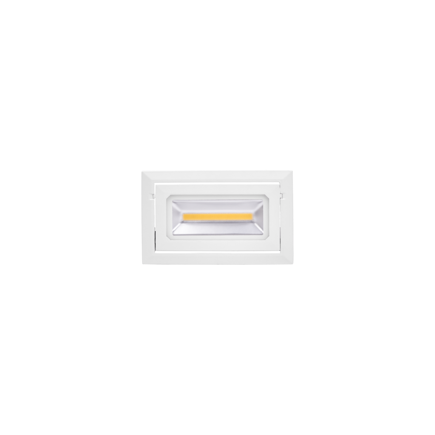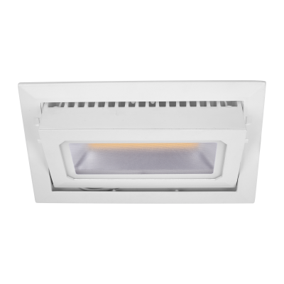 Downlight empotrado rectangular y basculante de 40W de potencia, que permite orientar la luz a los espacios deseados.