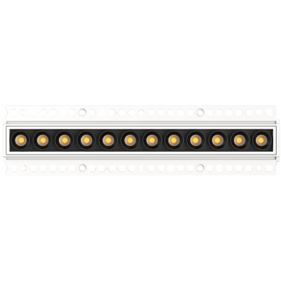 Downlight lineal empotrado en versión trimless, queda enrasado al techo y sin marco, convirtiéndolo en una opción perfecta y minimalista de alto confrort visual, formado por módulos de 20W con un diseño longitudinal de tamaño super reducido.