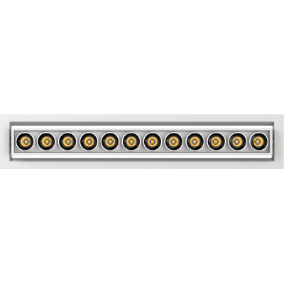 Downlight lineal empotrado de alto confort visual formado por módulos ópticos de 20W con un diseño longitudinal de tamaño super reducido.
