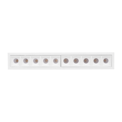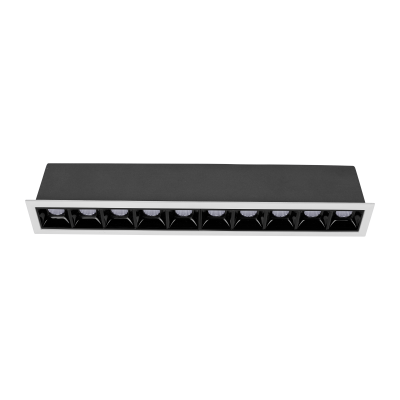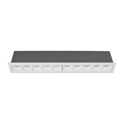 Downlight lineal empotrado de alto confort visual, formado por módulos ópticos individuales de 2W con un diseño longitudinal de tamaño reducido.
