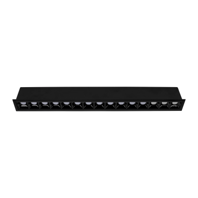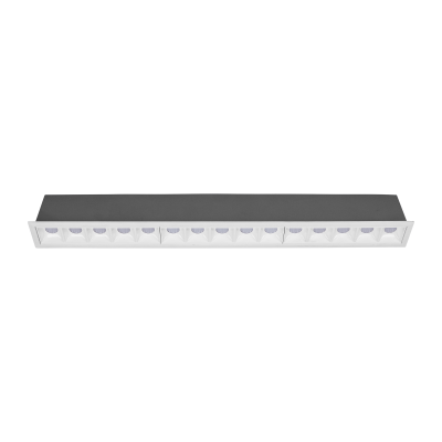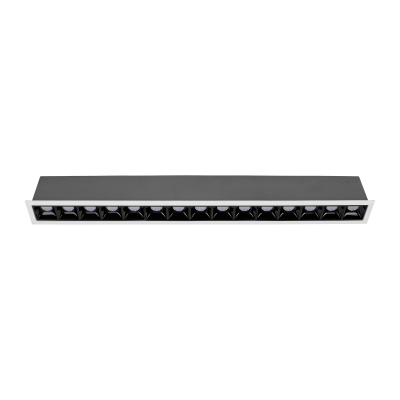 Downlight lineal empotrado de alto confort visual, formado por módulos ópticos individuales de 3W con un diseño longitudinal de tamaño reducido.