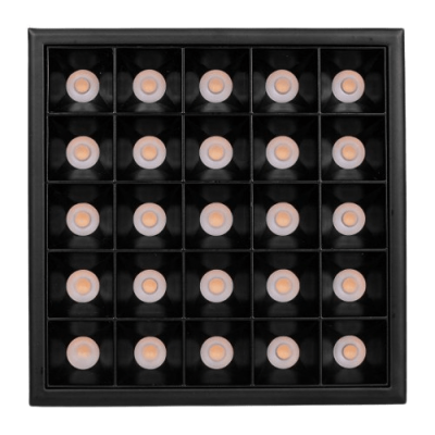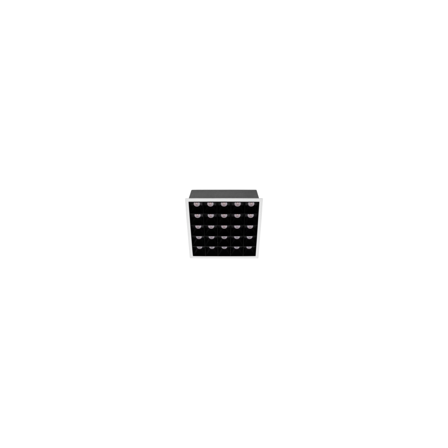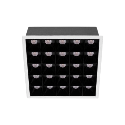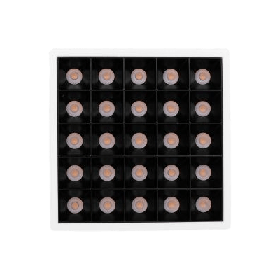 Mini downlight cuadrado de tamaño super reducido y diseño minimalista con alto confort visual, formado por módulos ópticos individuales.