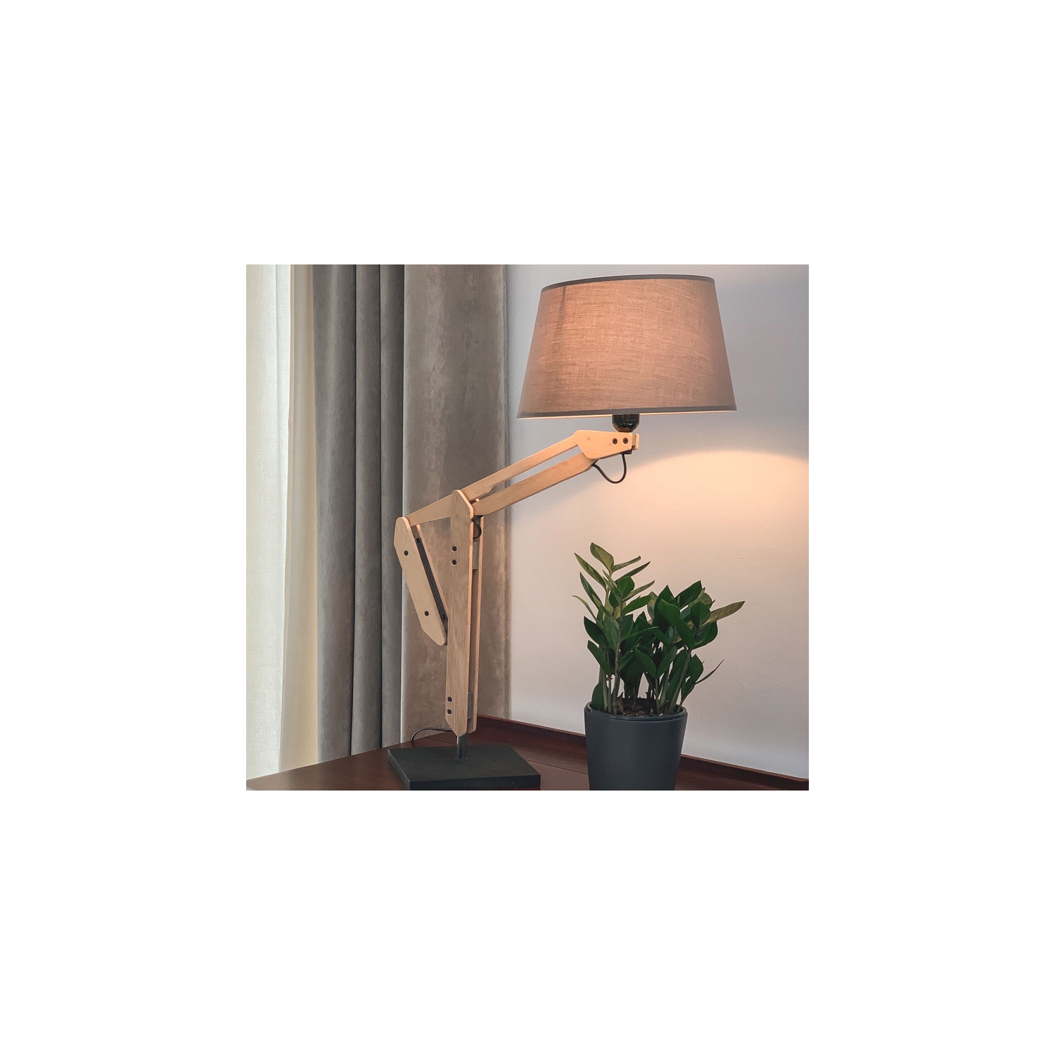 Thea es una lámpara giratoria con brazo oscilante que puede regular su altura de manera eficiente gracias al contrapeso asistido por un mecanismo de fricción. Se trata de una lámpara de gran equilibrio estético entre sus materiales sostenibles y muy dinámica gracias a su geometría.