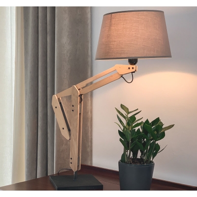 La estructura y la base son de madera, cemento y hierro. La madera en el cuerpo aporta calidez y el panot “flor de Barcelona”, identitario de la ciudad donde se ha diseñado y fabrica esta lámpara, da peso y estabilidad a la base.