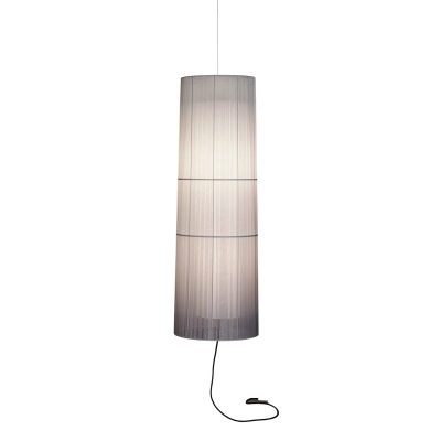 Pantalla doble encintada de organza en blanco, gris, beige o negro. Pantalla difusora interior en forma cónica de poliéster.
