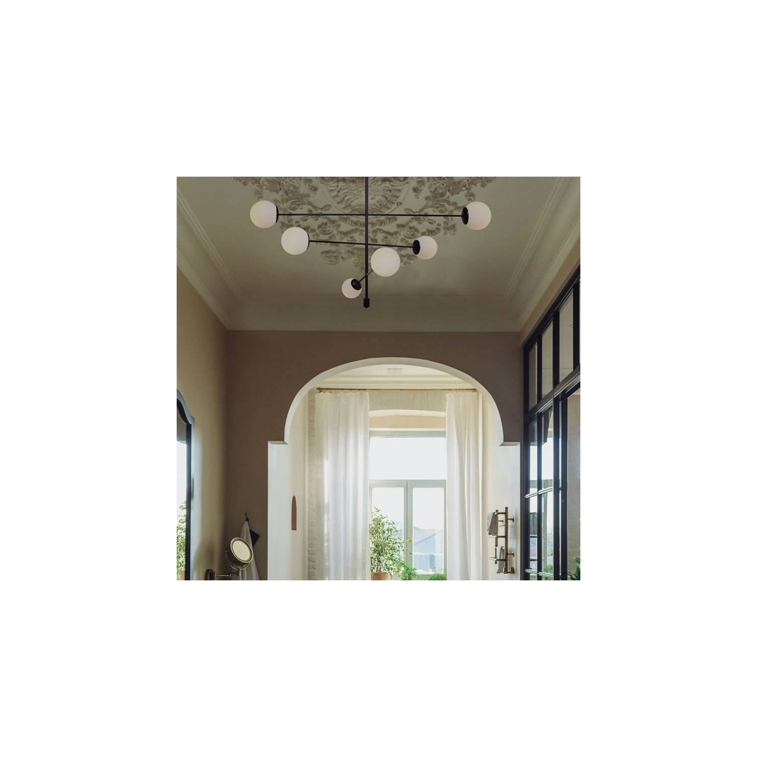 La colección Lymington con sus globos de cristal inspirados en el diseño vintage se fabrica en diferentes acabados: blanco, negro y dorado. Se trata de una pieza muy versátil y apropiada tanto para uso doméstico como para proyectos de restauración.