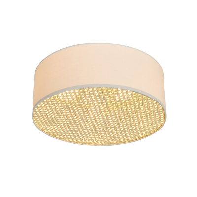 Pantalla de lino, loneta, arpillera, osaka o cotonet. Difusor de pergamino de policarbonato, rafia o rejilla de mimbre natural.