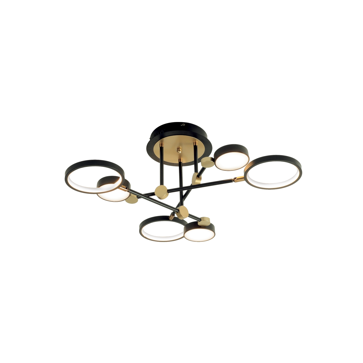 El plafón multiluz Persa, con la clasificación irregular de las lámparas, la iluminación directa e indirecta y el estilo descuidado de los fustes, aporta una estética moderna y un estilo especial a tu espacio.