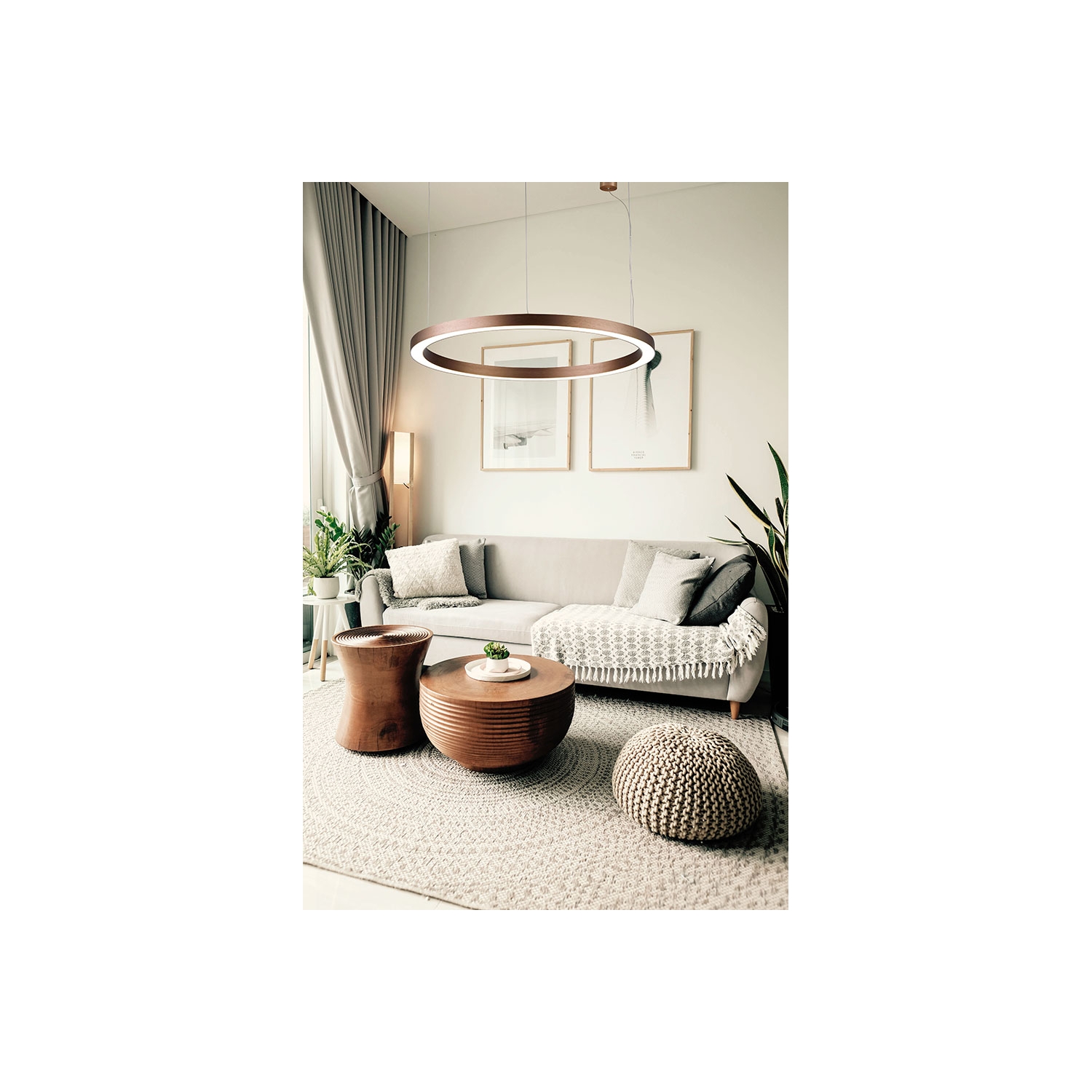 Aro de iluminación de un estilo incomparable en color café, que promete transformar tu espacio dándole una estética sumamente moderna. La lámpara Choco está equipada con tecnología LED incorporada, teniendo la posibilidad de atenuación por corte de fase.