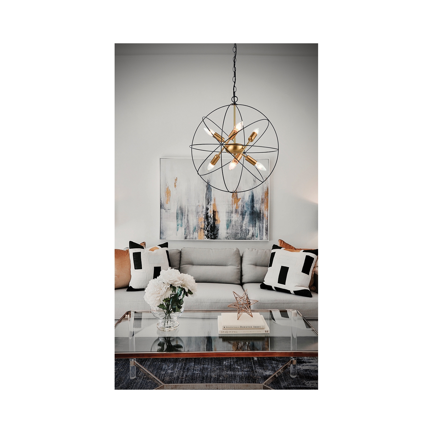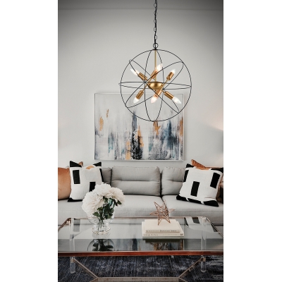 La lámpara Atom con múltiples luces, con su elaborada rejilla metálica, su disposición irregular de lámparas y sus detalles dorados, aporta a tu espacio un extra de estilo y personalidad.