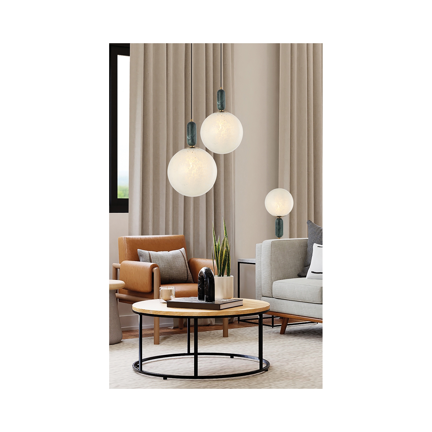 Una lámpara colgante que destaca por su diseño art decó y elegancia clásica. El bloque de color de su paleta con blanco y esmeralda combinado con el suave brillo que difunde, crean un espacio cálido y acogedor. Una lámpara que redefine el concepto de lujo.