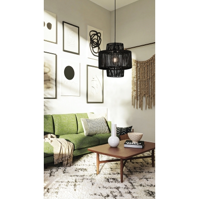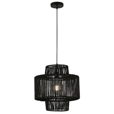 Un regreso a las técnicas orgánicas de fabricación de objetos tejiendo cuerdas en marcos de metal. Una lámpara de techo colgante que evoca los momentos más bellos del diseño africano.
