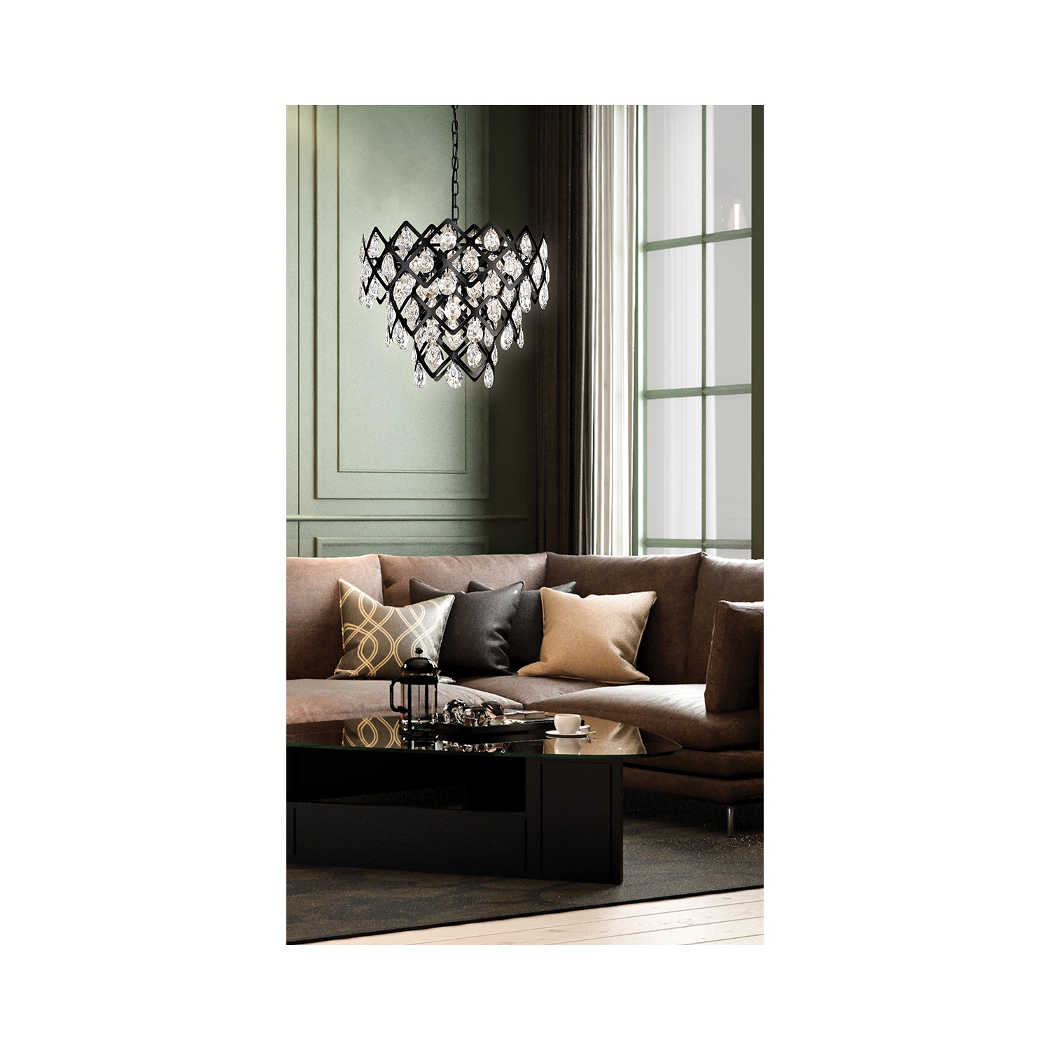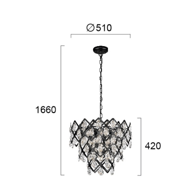 Una variación moderna de la lámpara de araña clásica. La lámpara de techo colgante combina el lujo moderno con una geometría estricta, creando un efecto estético único. La pieza ideal para darle carácter incluso a un espacio sencillo.