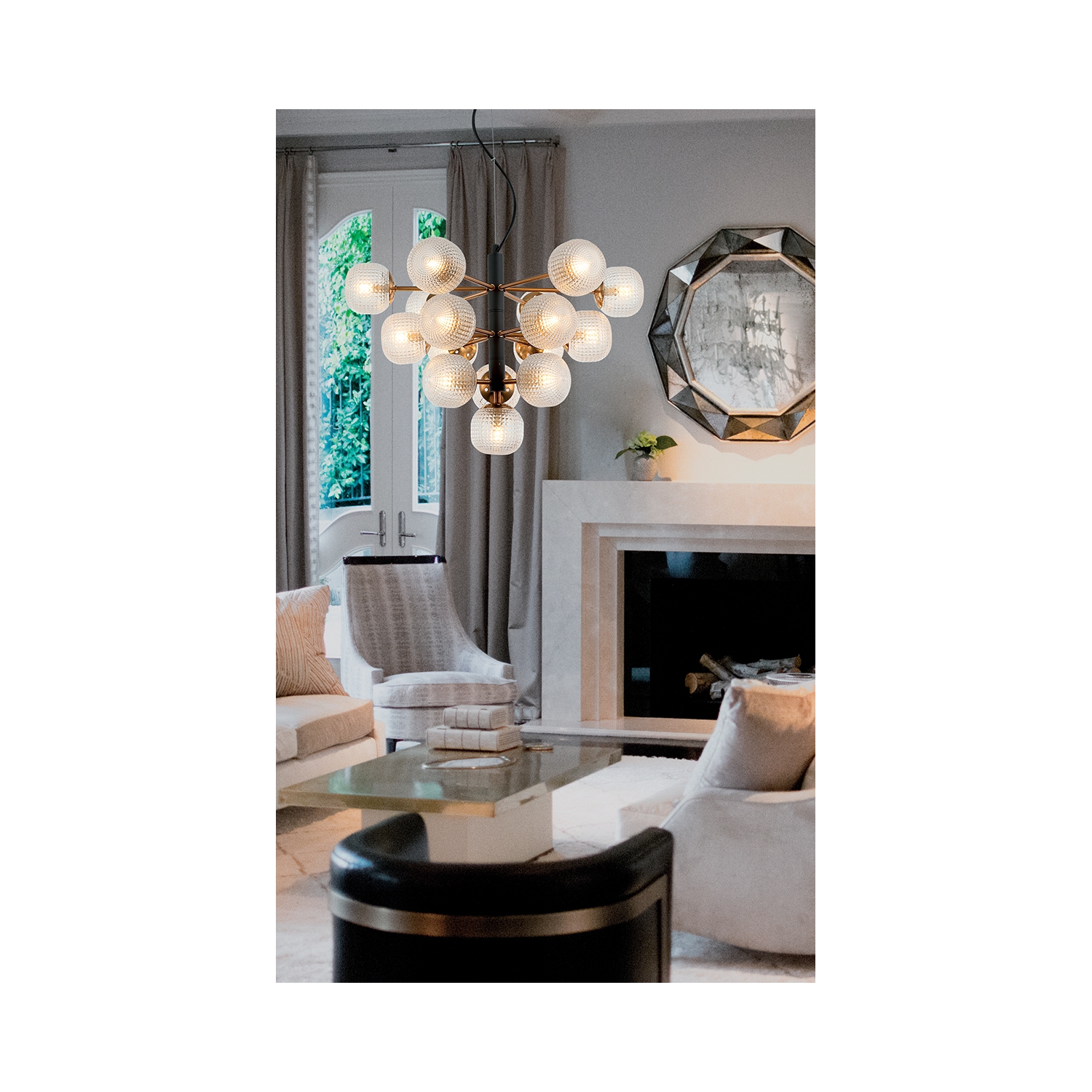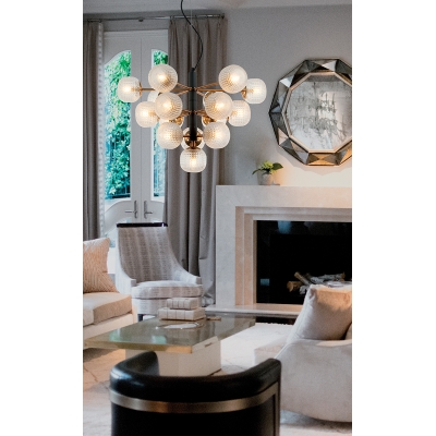 La lámpara de techo Naysika combina un diseño clásico con detalles modernos, creando un sorprendente efecto lumínico y decorativo.