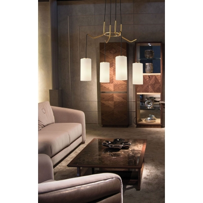 La clásica lámpara Elenor, con su diseño sencillo y detalles dorados, crea un efecto imponente en tu espacio.