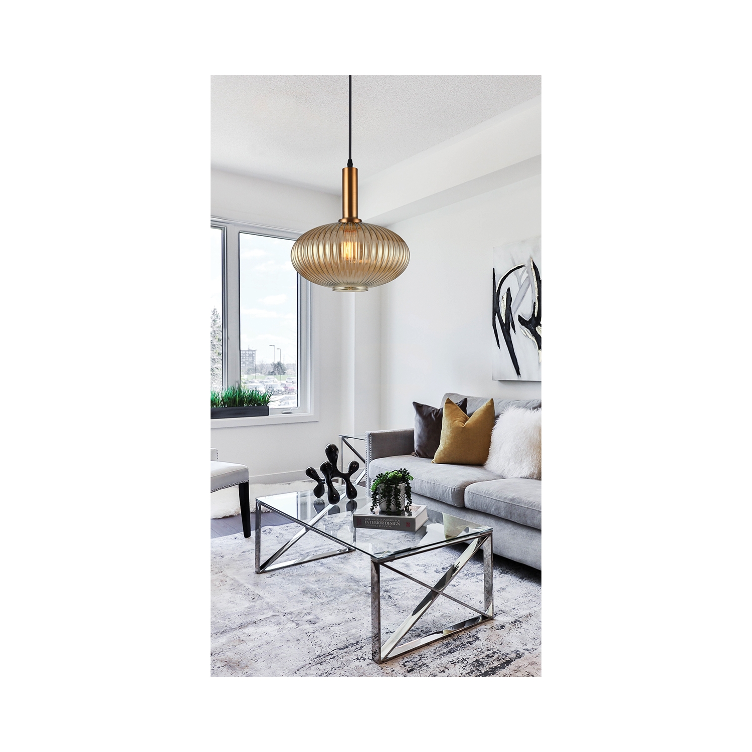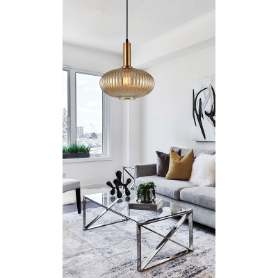 La lámpara individual Sophie, de diseño moderno e industrial, con cristal transparente gofrado y detalles en oro mate, atraerá todas las miradas.
