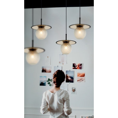 La lámpara Cairo de una sola luz, con cristal transparente gofrado y espejo en la tapa, crea un sorprendente efecto de iluminación y un toque moderno en tu espacio.