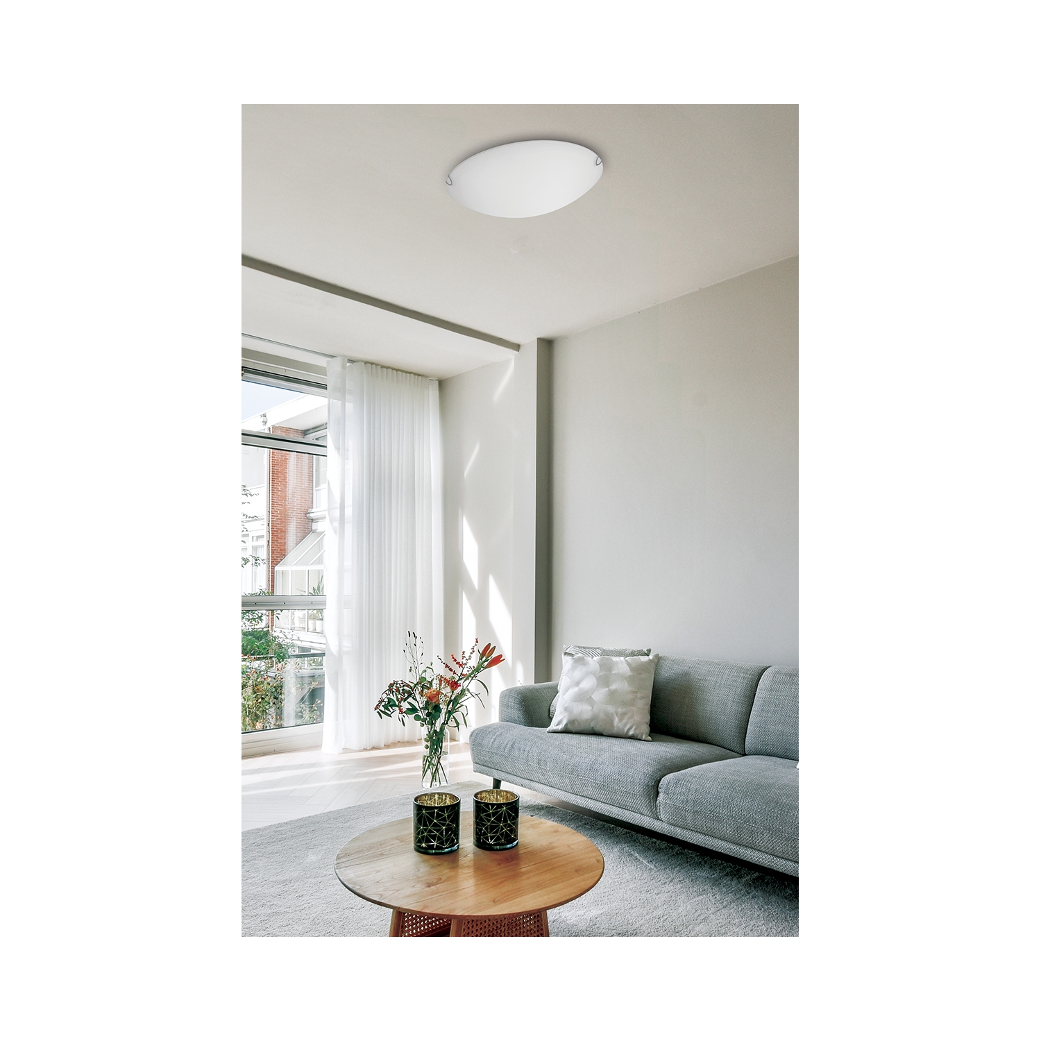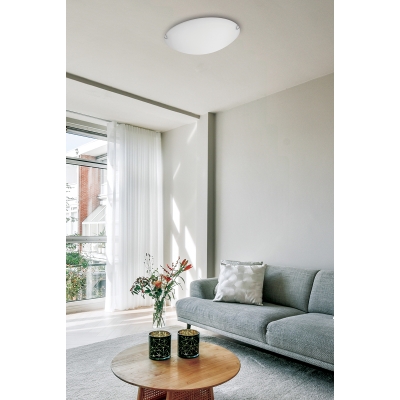 La lámpara de techo David, con cristal blanco satinado y ribete cromado, promete impresionar por su sencillez.